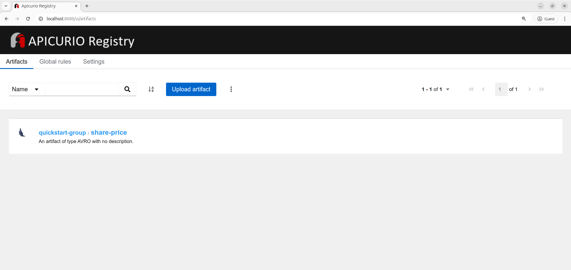 $ curl localhost:8080/apis/registry/v2/groups/quickstart-group/artifacts | jq